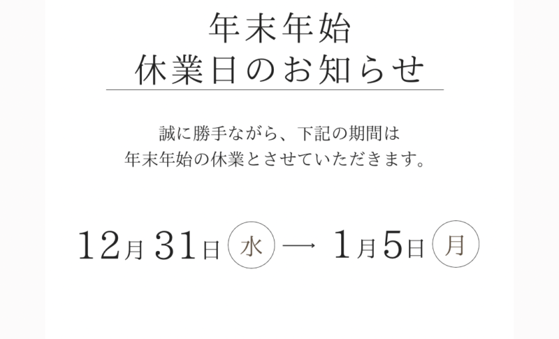 【年末年始のお休みについて🎌】